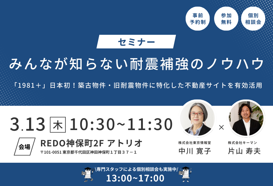 【セミナー】みんなが知らない耐震補強のノウハウ 〜「耐震博士研究所」日本初!築古物件・旧耐震物件に特化した不動産サイトを有効活用〜