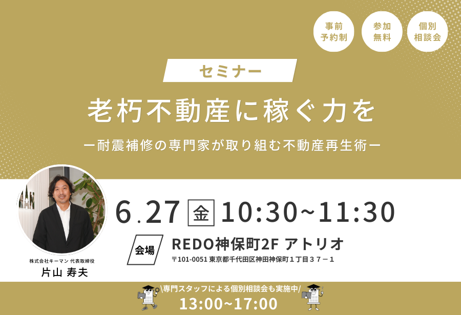 【セミナー】老朽不動産に稼ぐ力を~耐震補修の専門家が取り組む不動産再生術~